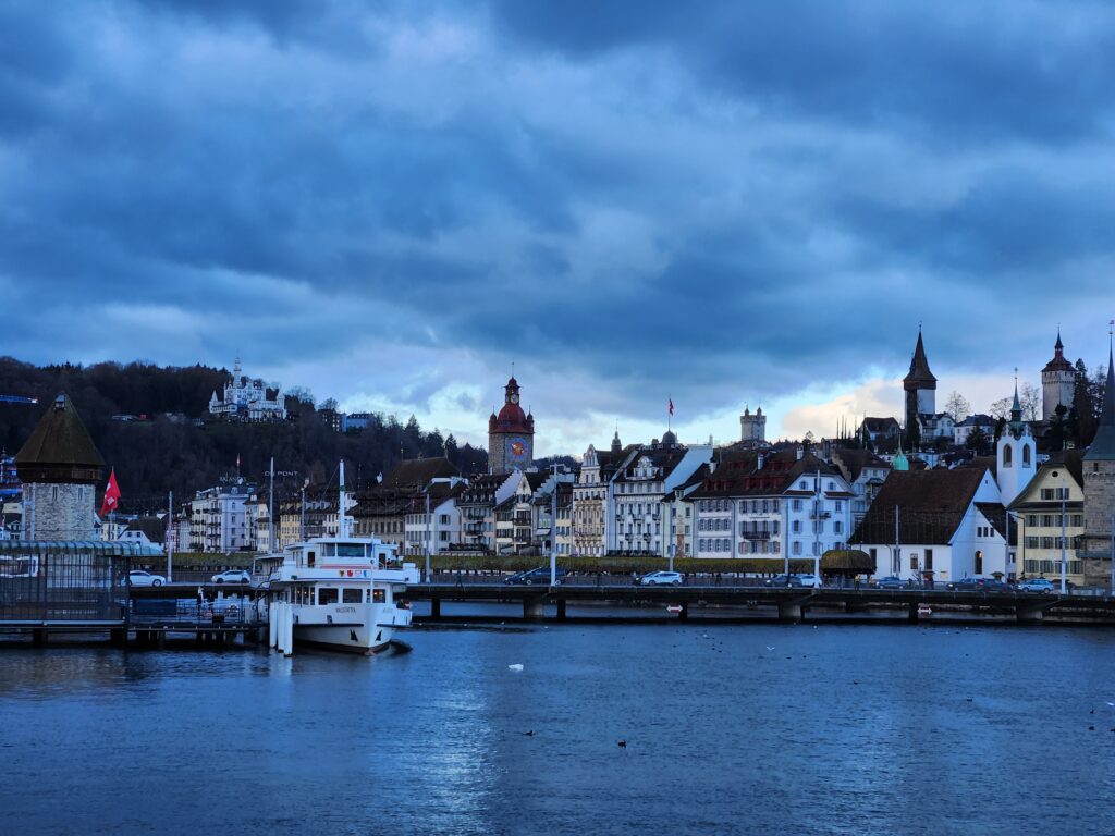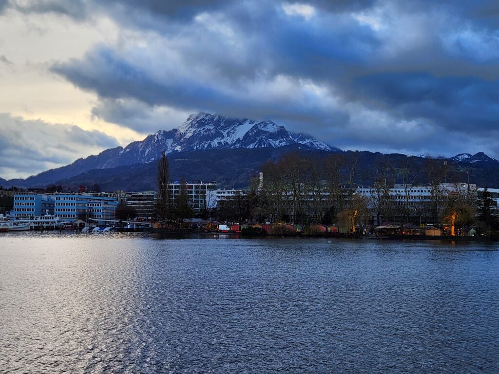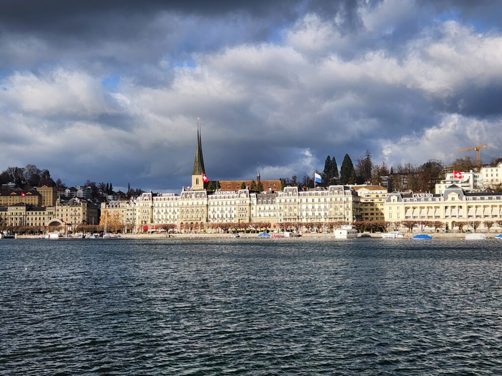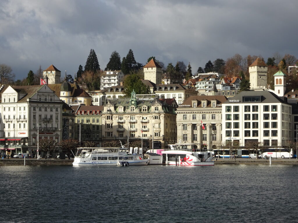 We awoke around 7am and headed to breakfast after our showers, about 8am. We were all geared up for our trip to Mt. Titlis — multiple layers, serious coats, etc. — as it is in the Alps at around 10,000′ and it being, well, December. I wasn’t optimistic about our chances of going, however. While yesterday had been gorgeous a storm had moved in and, while it was fairly nice weather in Lucerne, Mt. Titlis was getting heavy snow and hurricane force winds. As we’d be taking a free-hanging gondola up to the peak… yeah.