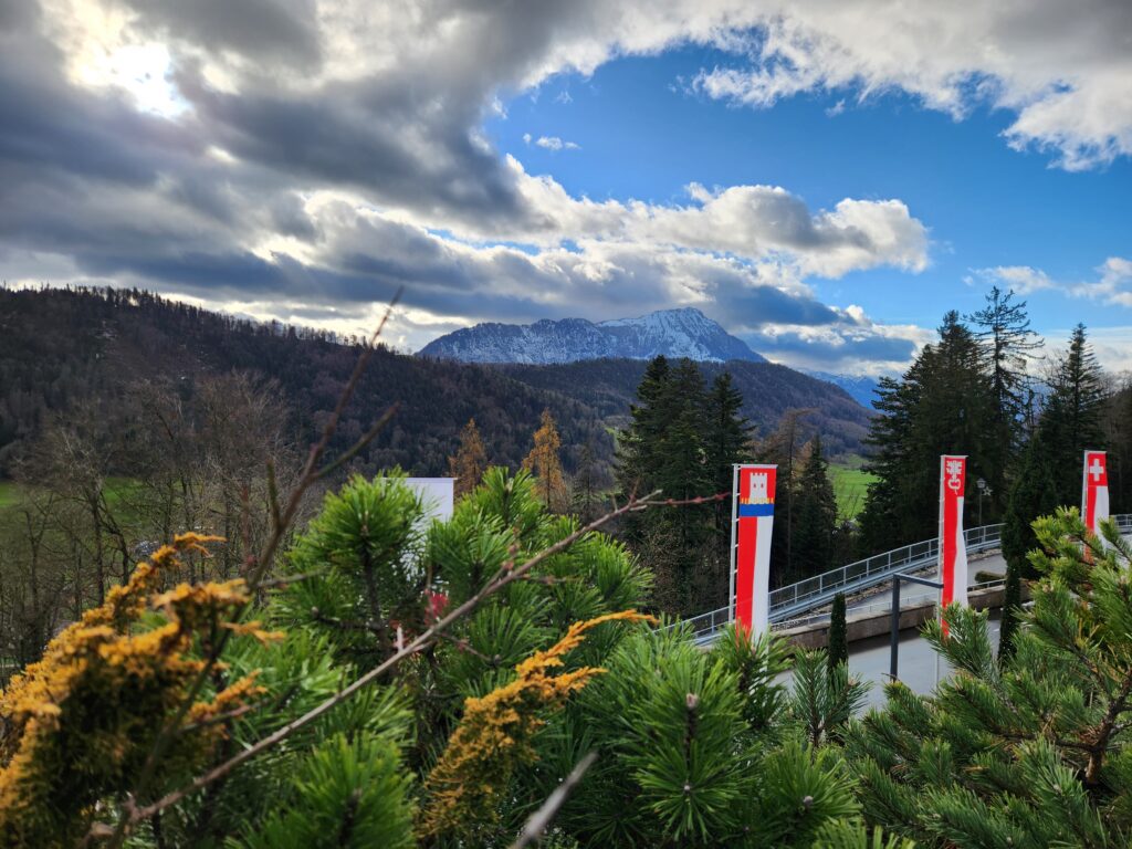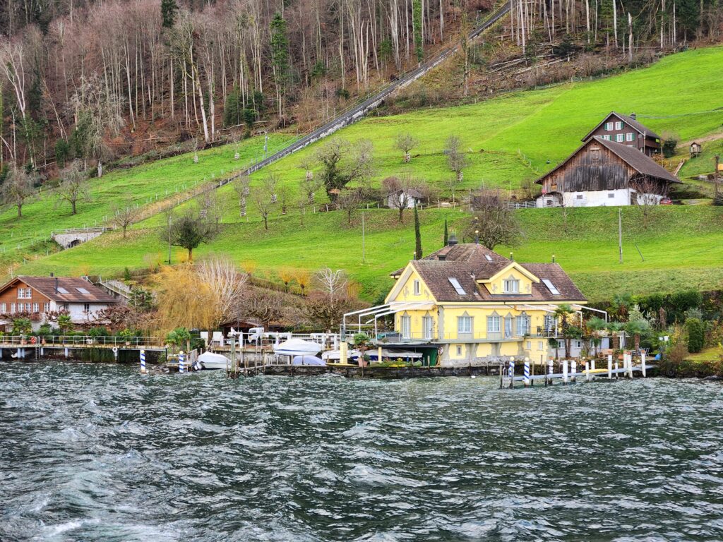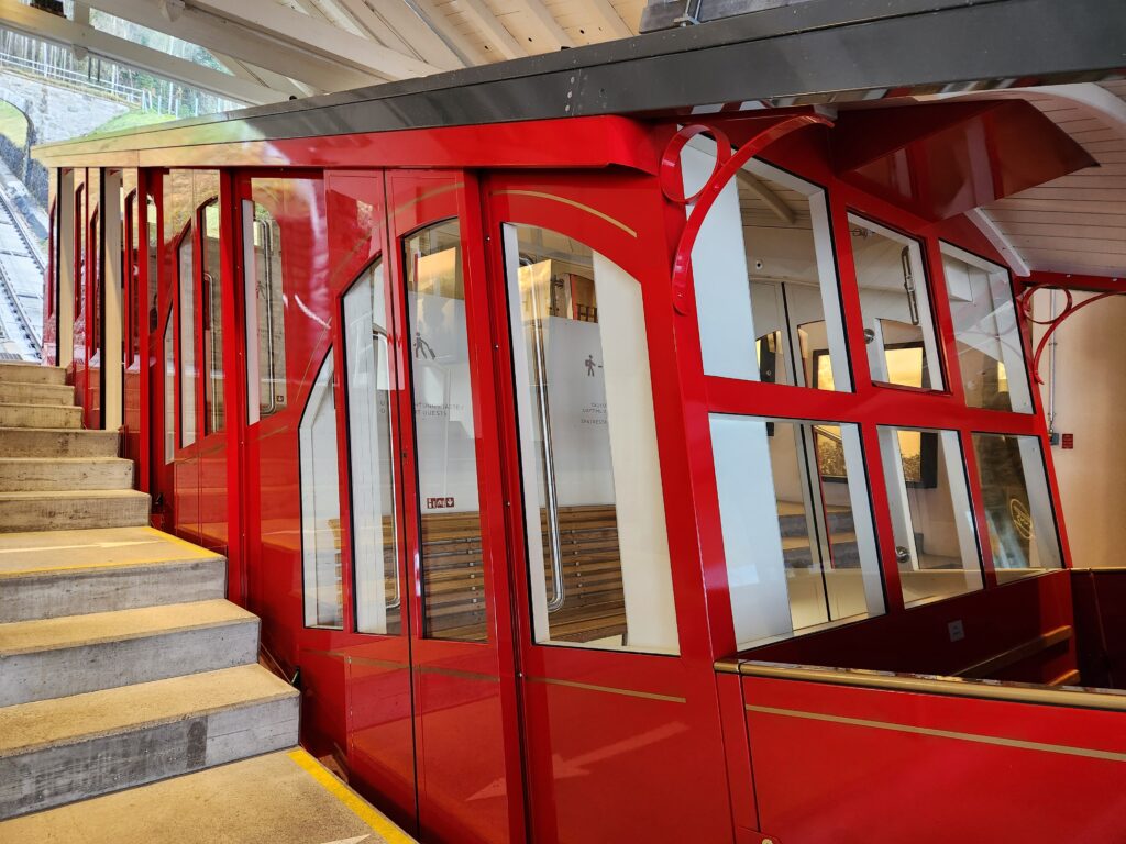Sadly we missed the 11:25am funicular back down the mountain so had to wait for the 12:25pm one. None of the restaurants were open so that wasn’t an option. We explored some more and luckily the delay meant we discovered an awesome viewpoint we had missed before so it was all good. It was really neat seeing the lush green hillsides with chalets scattered here and there and the Alps looming in the distance. The viewpoint also provided a panoramic view of the lake and Lucerne. Really breautiful!