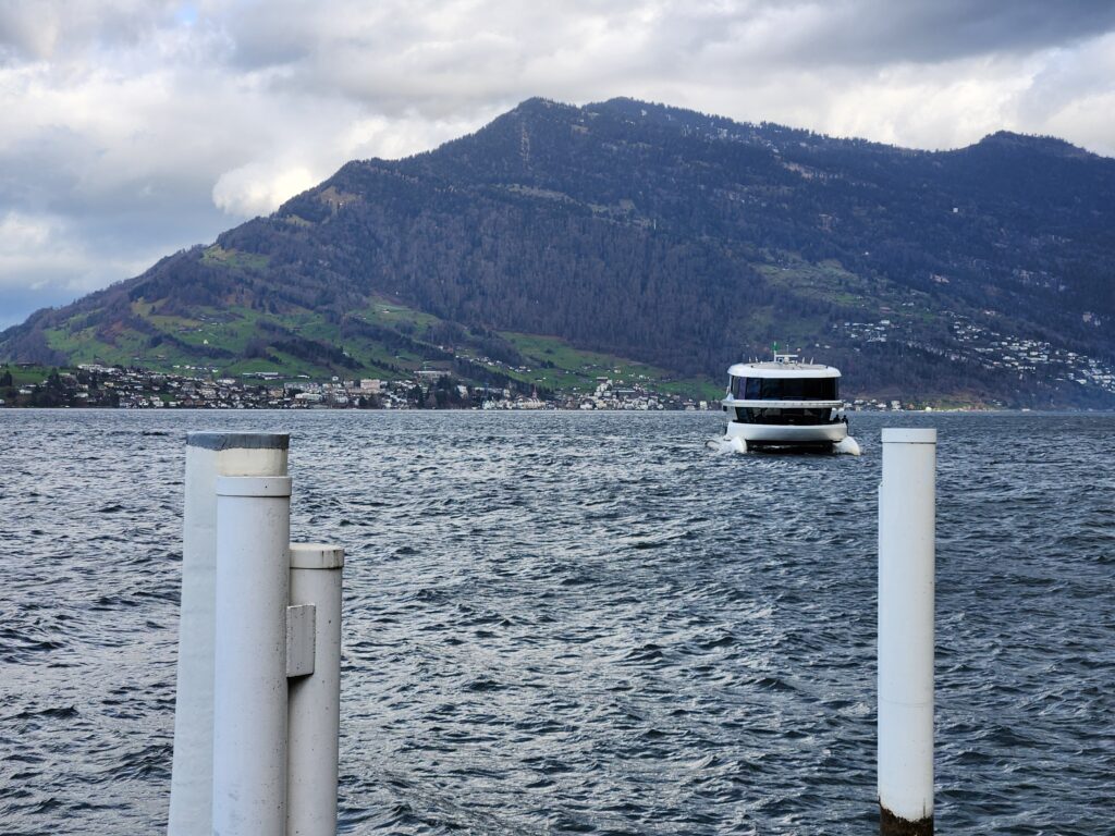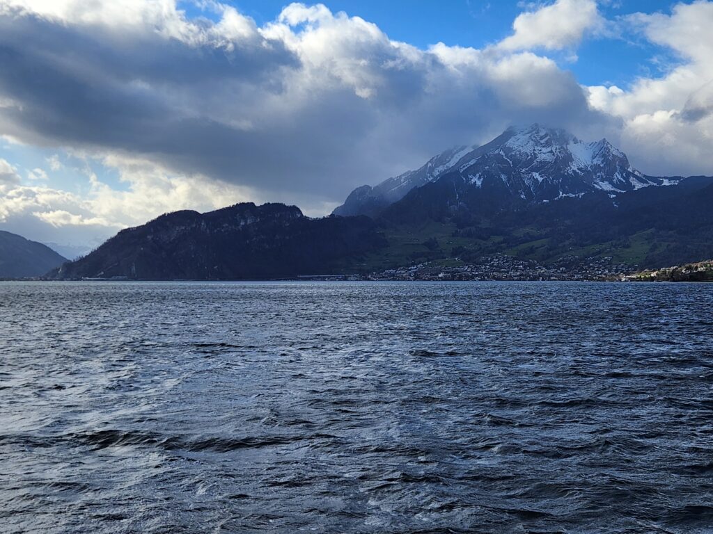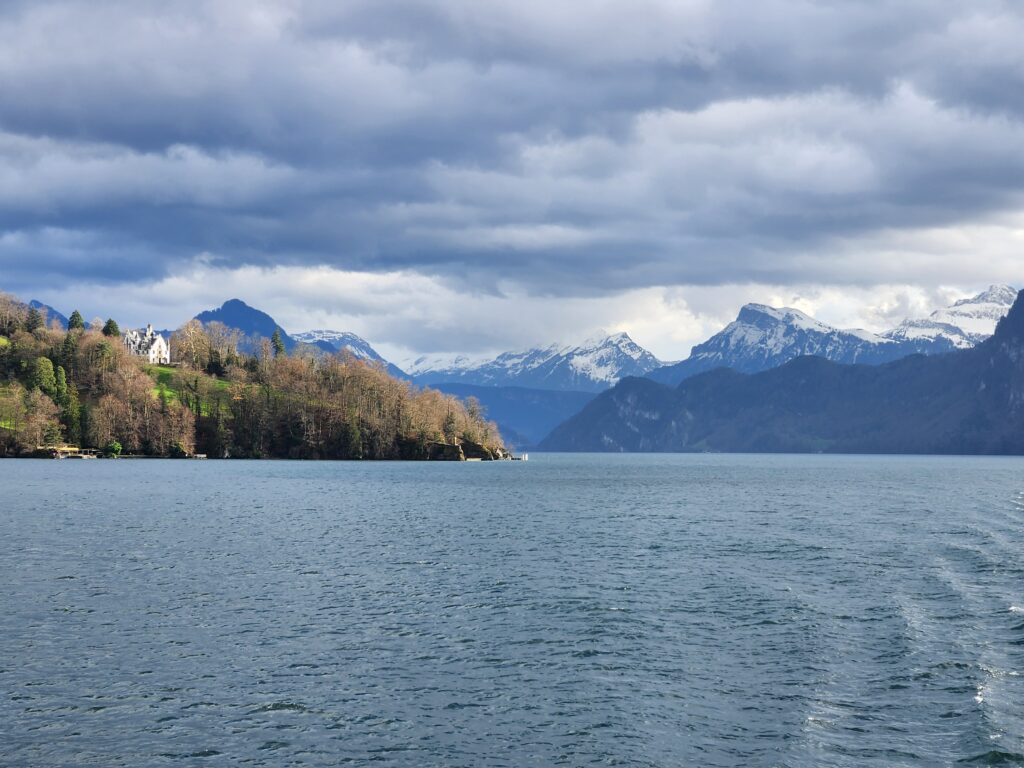We took the 12:25pm funicular back down and met the catamaran. There was a woman on the boat with two enormous but very rich-looking (you know the type) dogs. One was quite dirty, however, and she was in white pants trying desperately to keep the mud off of her. The boat let us off in Lucerne right at 1pm, leaving us enough time to get a bite to eat before returning to the hotel for our departure.