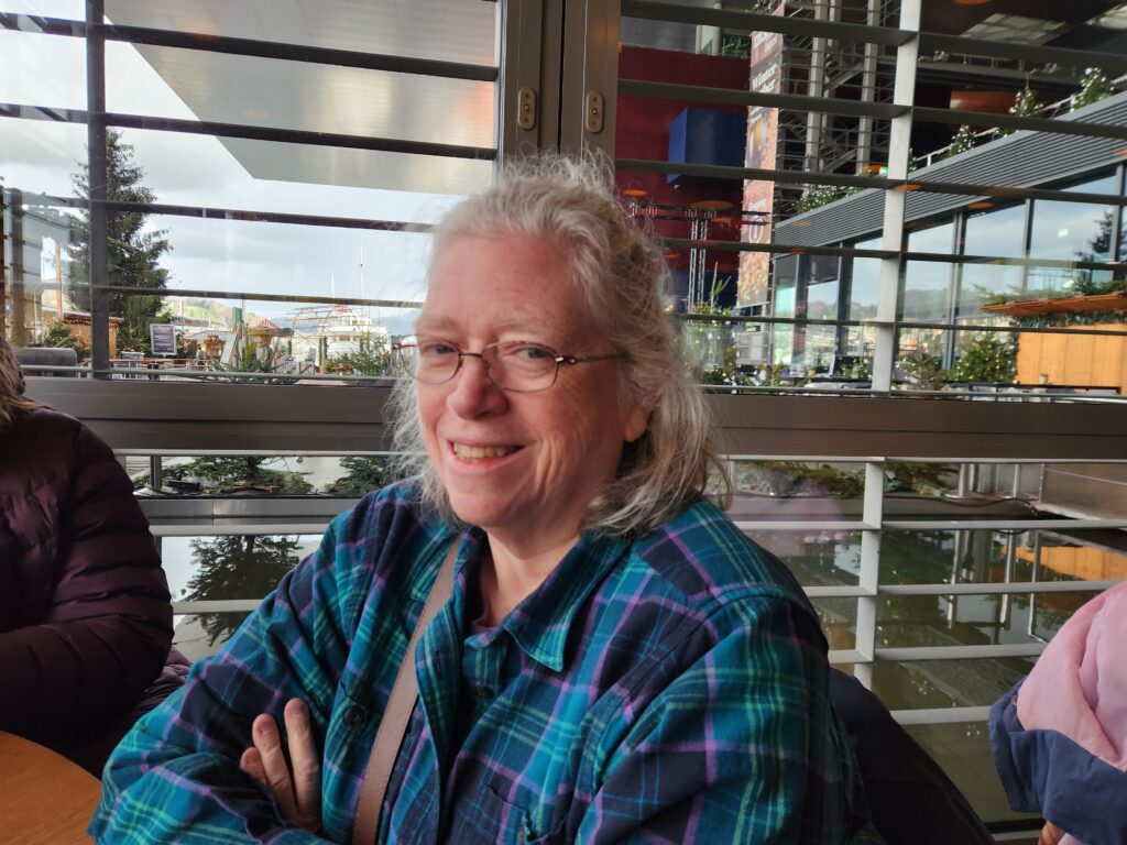 We headed to dinner at 7:15pm. It was fantastic! The way lunch and dinner work is that there’s always some items on the left available like steak, chicken, classic vegetables. On the right the menu varies daily, with regional offerings. There is a salad then main course then dessert and one can mix and match between the left and right sides. They’re very flexible. I had a German salad with pickled cucumbers, ham, and cheese followed by veal in a mushroom sauce with a potato pancake and coffee ice cream (!) to top it off. Genetta had what I had except for the salad, she opted for a Caesar salad. Michelle had a Caesar salad, rotisserie chicken, and mashed potatoes. I drank coffee and Genetta had some wine.
