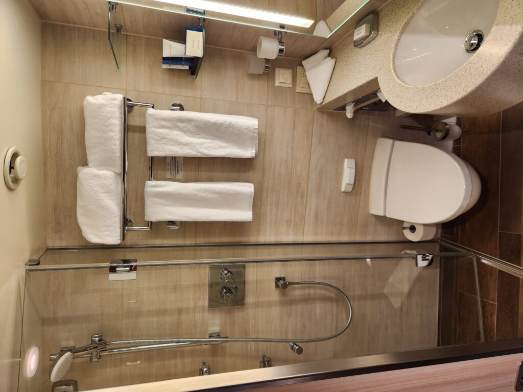 We arrived at the Hyperion hotel in Basel around 4pm to use the restroom and pick up people that did their pre-stay in Basel. We then proceeded on the bus to Kembs, France and met our boat (moored to a levy) at 5pm. All us guests were very efficiently led to our rooms by members of the crew, who also carried our bags. We were led to the lower deck down the stairs in the middle of the boat and shown our room. Michelle and I had one and Genetta’s was directly next door to the left, both on the starboard side of the ship.